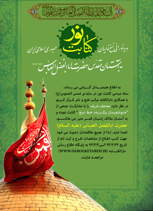 ستاد مردمی کتابت نور در سایه ی شمس الشموس (ع) با همکاری دارالکتابه مرکز طبع و نشر قرآن کریم در نظر دارد، مصحف شریف را با مشارکت جمعی از خوشنویسان برگزیده خط نسخ، کتابت نموده و به آستان ملائک پاسبان قمر منیر بنی هاشم، حضرت اباالفضل العباس (علیه السلام) اهدا نماید.